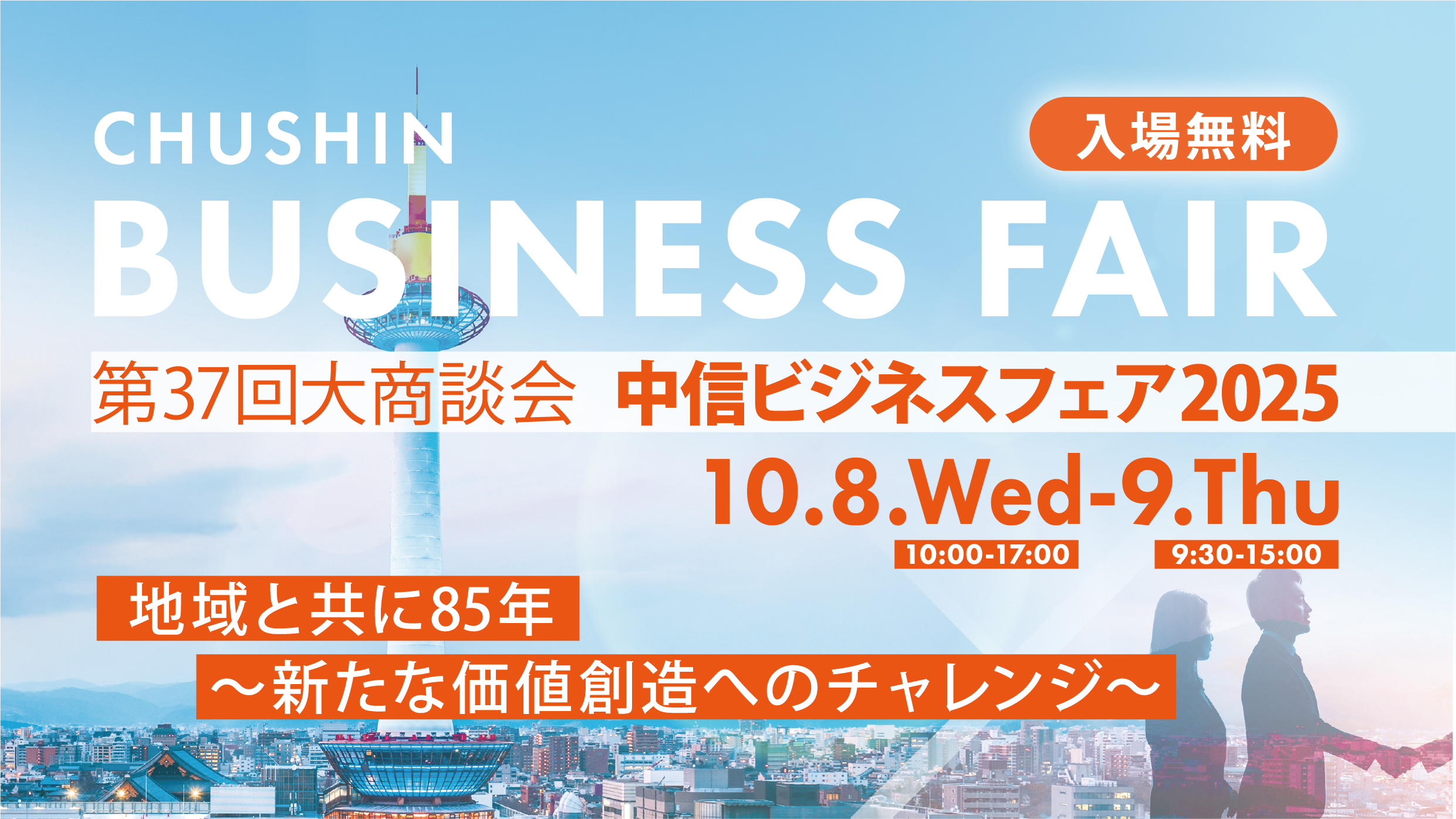2025年10月8日(水)・9日(木)に京都府総合見本市会館(京都パルスプラザ)にて開催される「中信ビジネスフェア2025」に出展いたします。